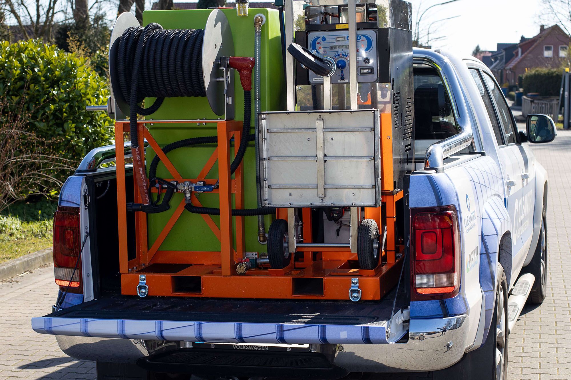 Fortan bietet er nicht nur Wildkrautbekämpfung mit Heißwasser sondern auch die Möglichkeit mit der Mischung aus Heißwasser und Wasserdampf Oberflächen, Handläufe oder z.B. Einkaufswagen zu Hygienisieren und somit Keimfrei zu machen.