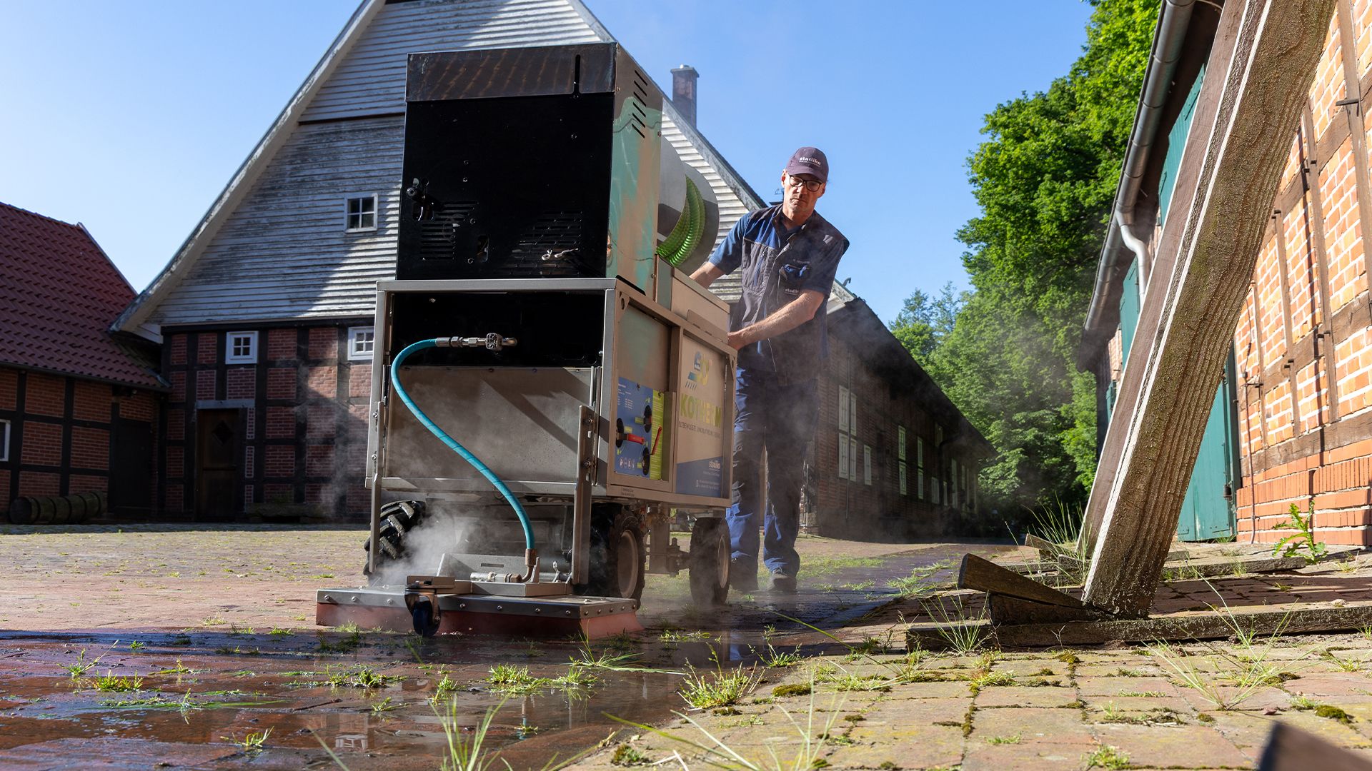 Was passiert bei einer Unkrautbekämpfung mit Heisswasser?
