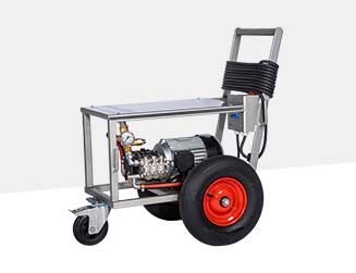 Die Serie HDK kann auch mit allen Motorpumpeneinheiten der HDVAR Serie ausgestattet werden. Somit kann dieses Modell bezogen auf Druck-Wasserleistung nach Ihren individuellen Wünschen und Bedürfnissen gefertigt werden. Das Besondere an dem Gestell sind die geringen Abmaße. Mit einer Breite von nur 64 cm ist dieser mobile Hochdruckreiniger 10 cm schmaler als die Profi-Reiniger aus der HDVAR-Serie und besticht daher durch seine Handlichkeit in engen Bereichen.