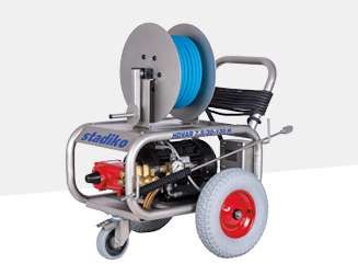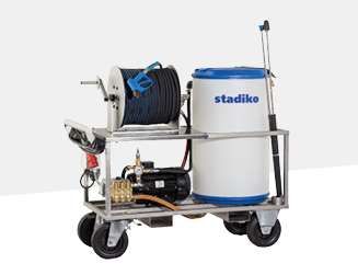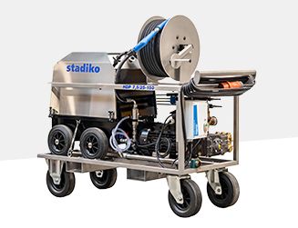 Der HDK 5,5/15-150 ist der Einstieg in die Professionelle Reinigung. Mit seinen 15 l/min = 900 l/h und seiner Stromversorgung über einen 16A CEE-Stecker läuft der HDK an jeder Wasserleitung. Dabei braucht sich auch bei diesem Modell die Pumpentechnik nicht verstecken. Entgegen wie in der Branche üblich setzt Stadiko Profi-Hochdruckriniger beim kleinsten Modell schon auf eine Plungerpumpe mit Kurbelwellenantrieb und erzeugt damit einen Arbeitsdruck von 150 bar.