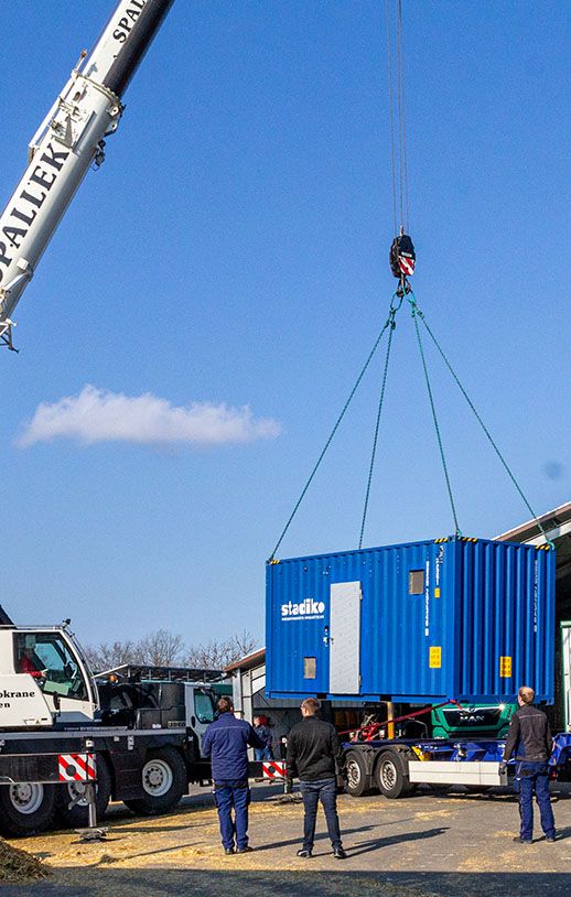 Die komplette Planung, Ausstattung und Installation erfolgte auf dem Betriebsgelände in Dinklage, von wo der Container mit dem eigenem LKW ausgeliefert und binnen eines halben Tages in Betrieb genommen wurde.